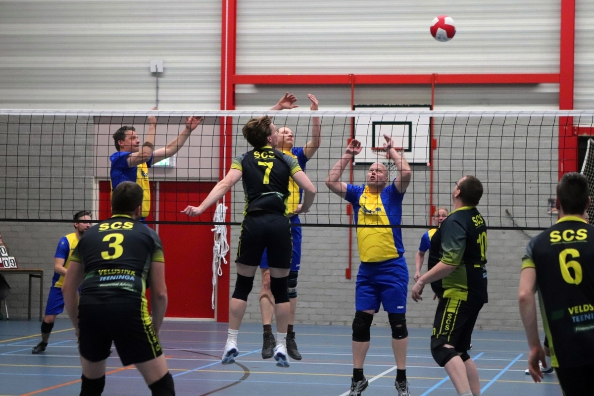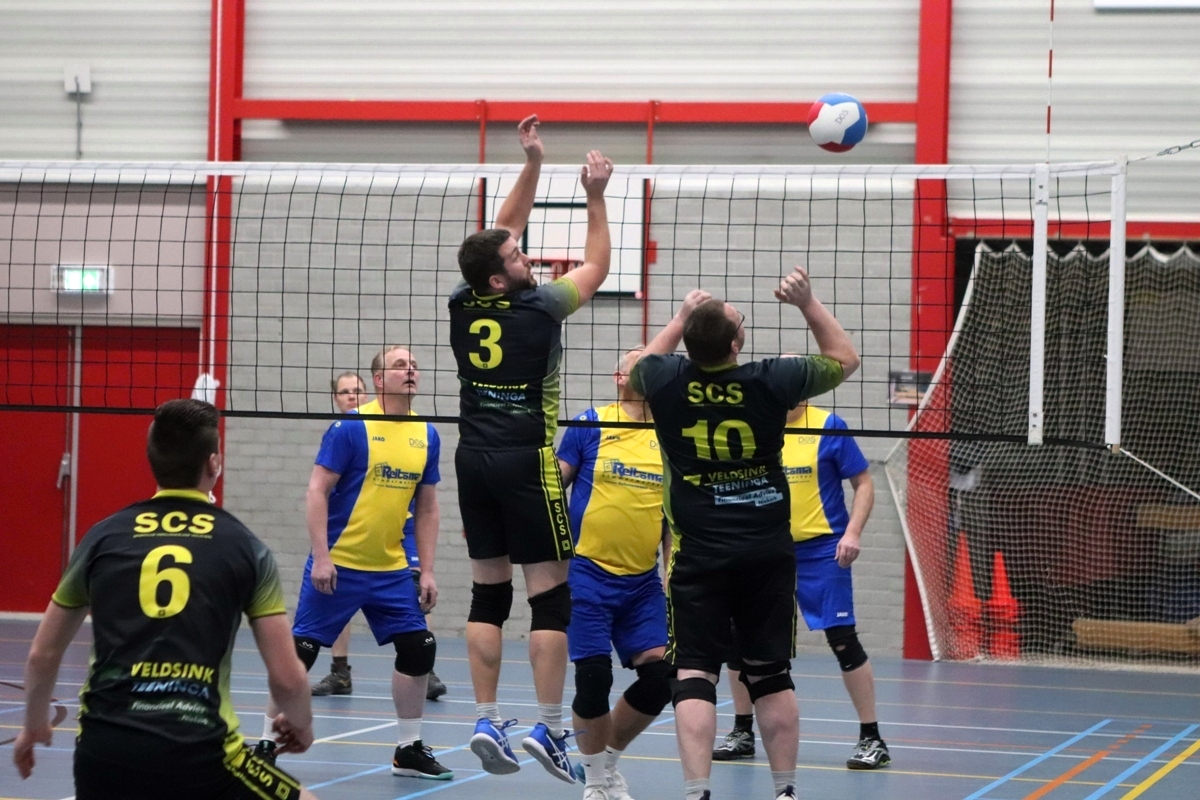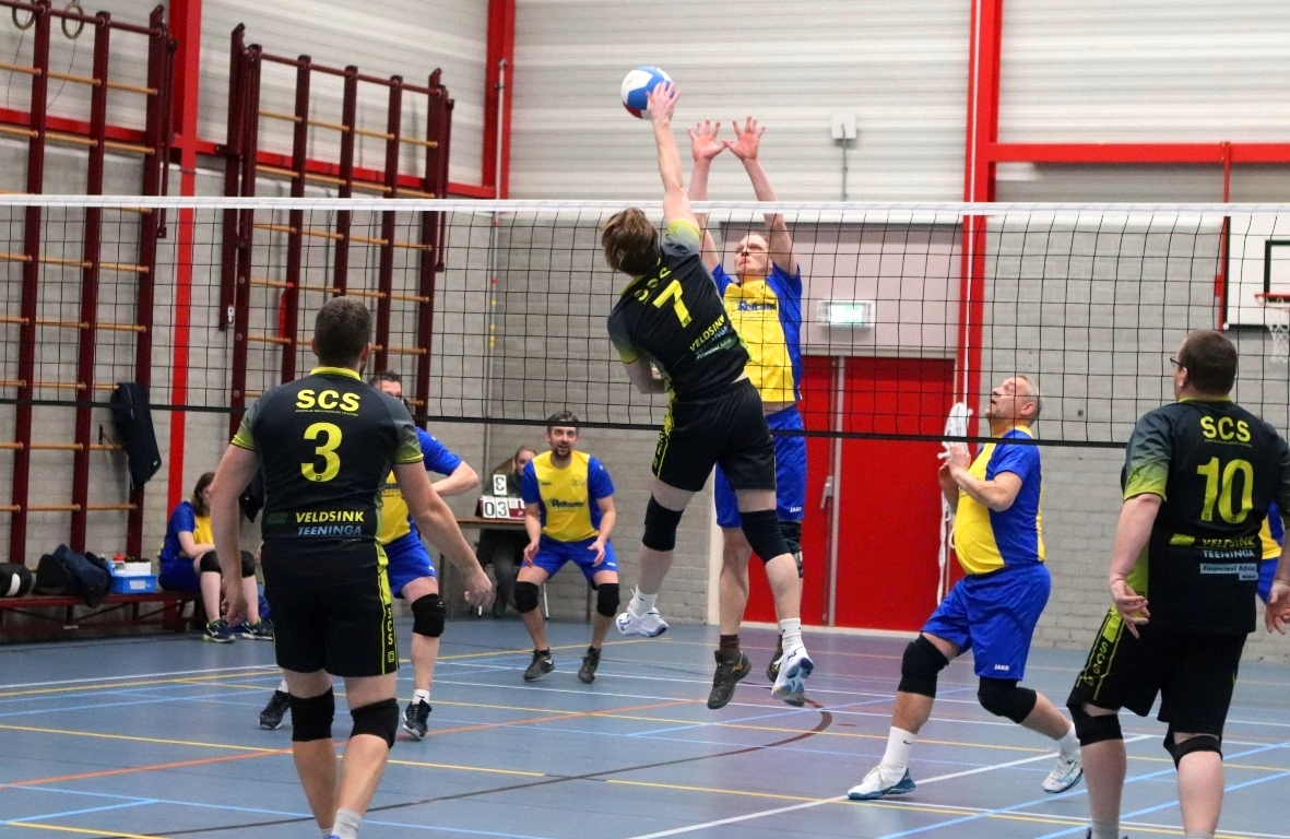 Deze verdiende setwinst zorgde voor enige verslapping aan het begin van de vierde set en die kans greep SCS met beide handen aan. In no time bewerkstelligde de ploeg een voorsprong van zo’n vier punten en behield deze tot het einde van de set, ondanks hard werken van de thuisploeg.